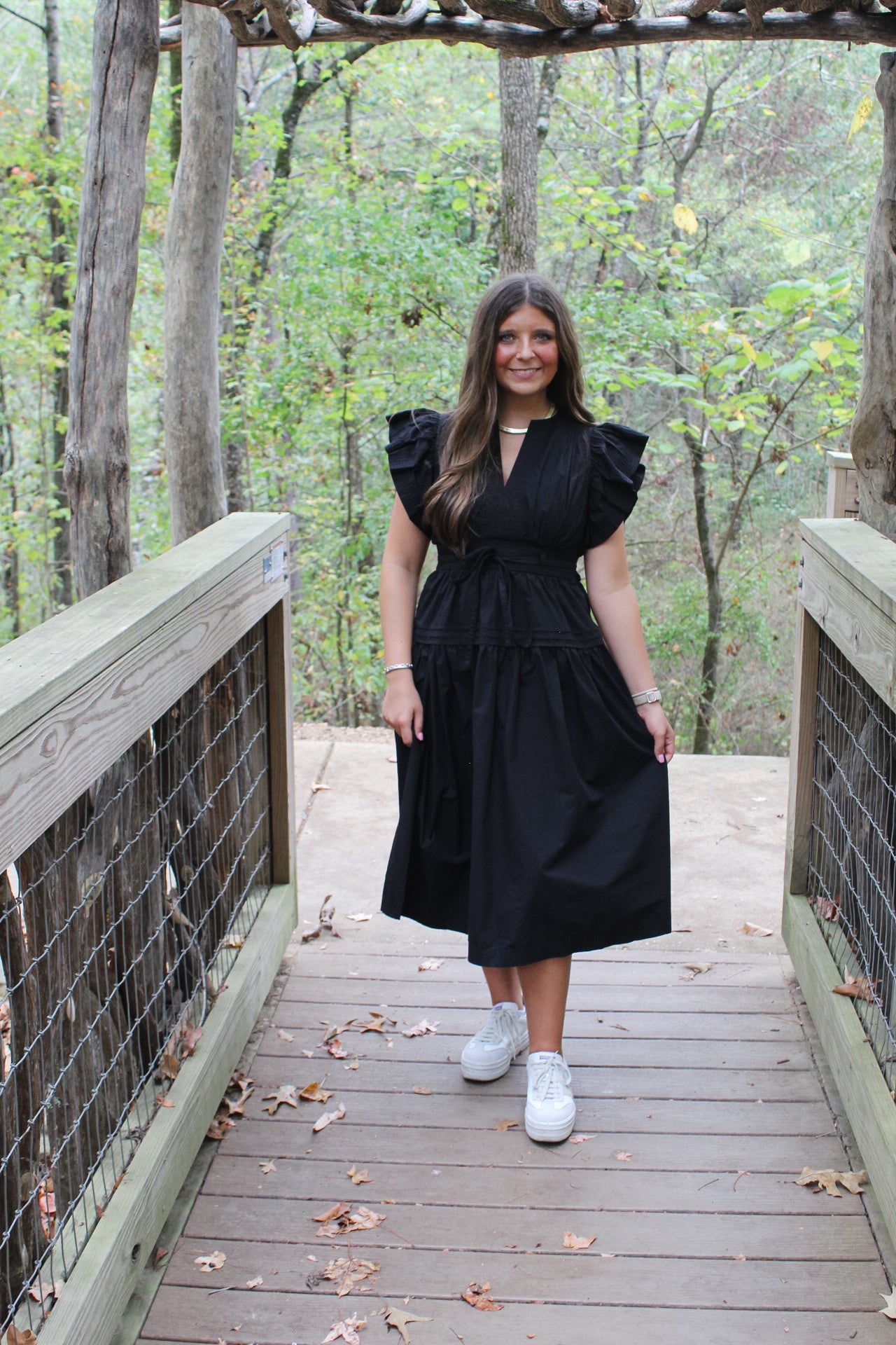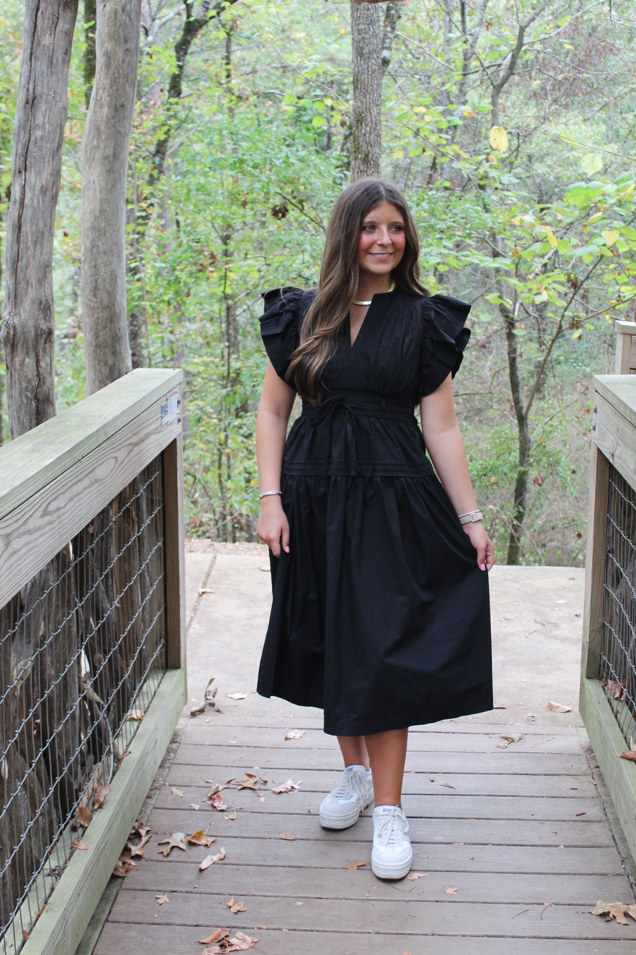 • Flutter sleeve midi dress in cotton poplin fabric.